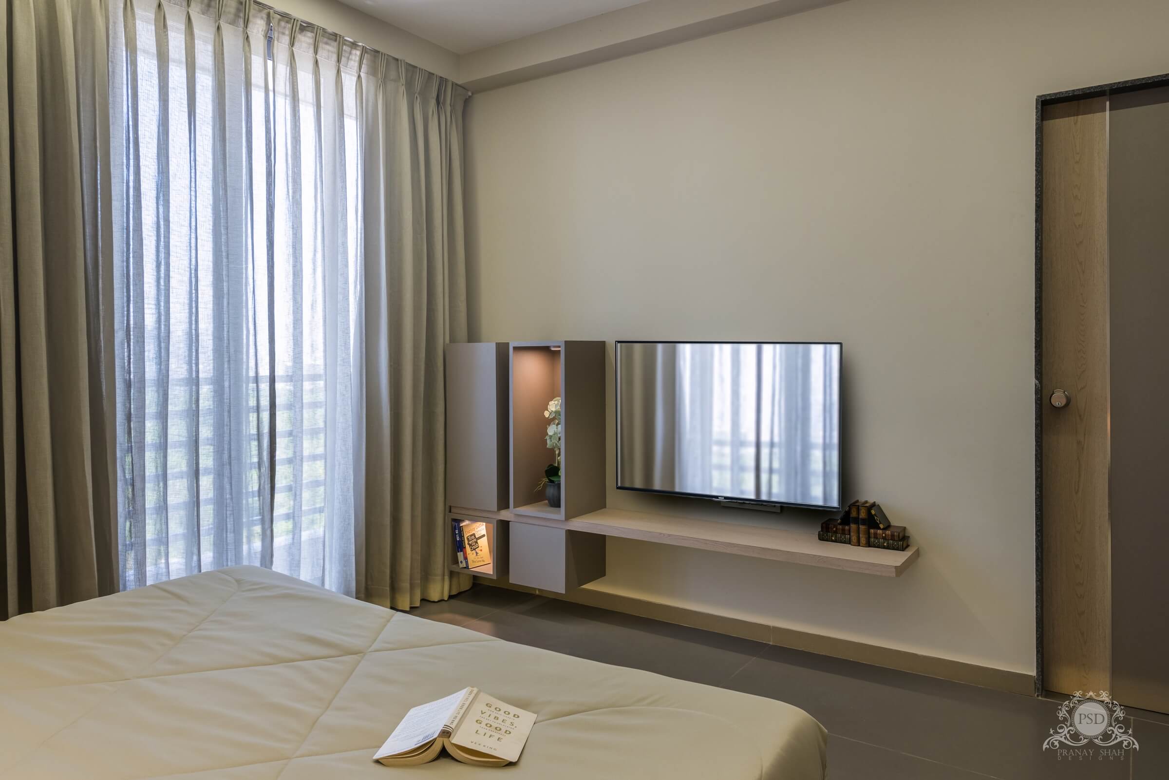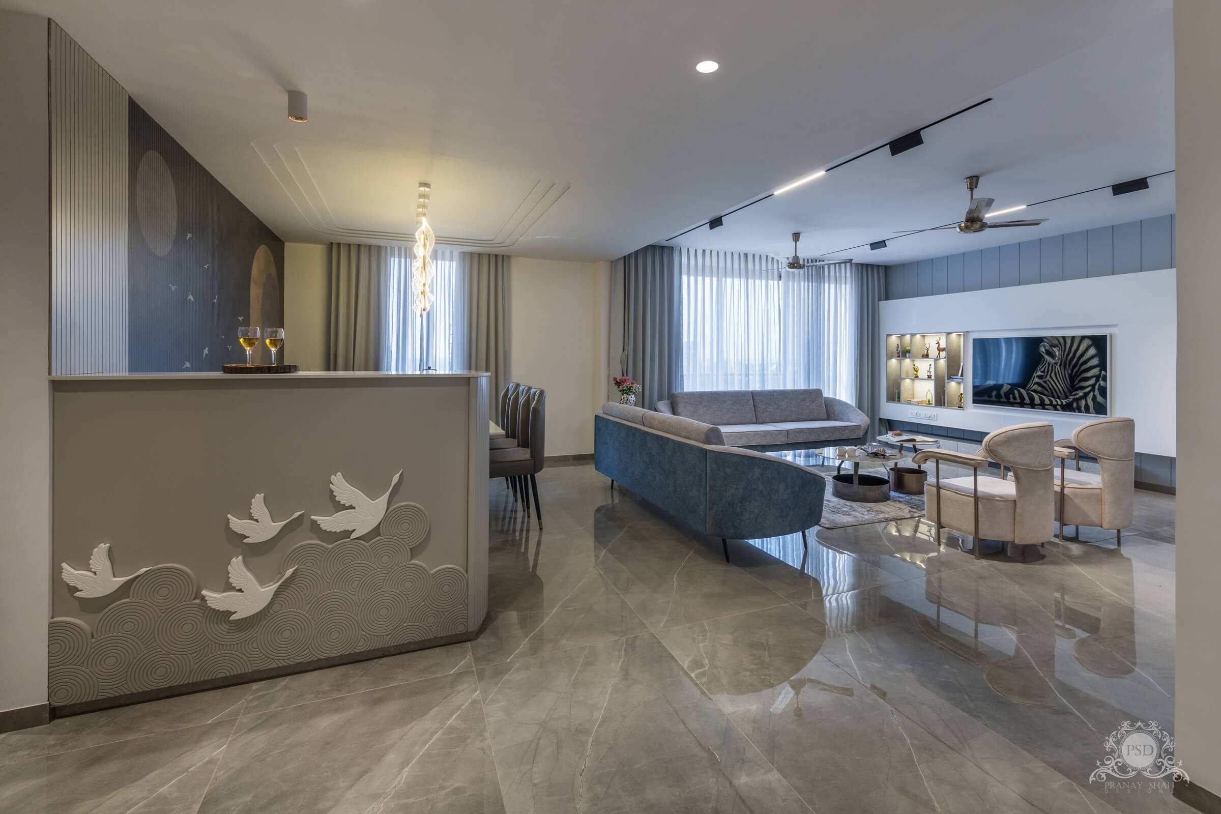 This flat of Mr. Dixit is for sure a perfect example of a complete modern era house that portrays every element visualized much pleasing and simple but has been designed and created by our team with a lot more workmanship. Every minute detail and element here is self-designed by our interior designers. Dixit Patel, A Luxurious 2BHK Flat by PSD Interior Designers in Vadodara with full turnkey solutions having unique and creative interior decor.